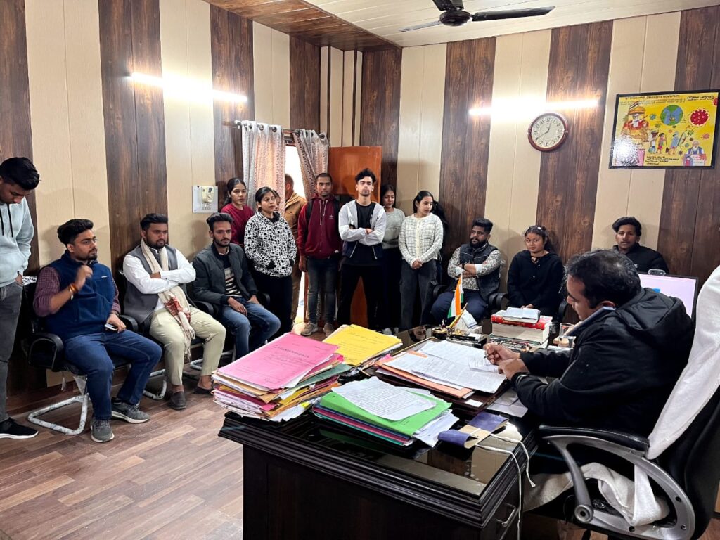 तहसील परिसर में छात्रसंघ अध्यक्ष हिमांशु जाटव के नेतृत्व में कॉलेज के छात्र-छात्राओं ने उपजिलाधिकारी को ऋषिकेश कॉलेज की जमीनों पर हुए कब्जे को लेकर ज्ञापन दिया व उक्त जमीनों पर कार्यवाही करने की मांग की।