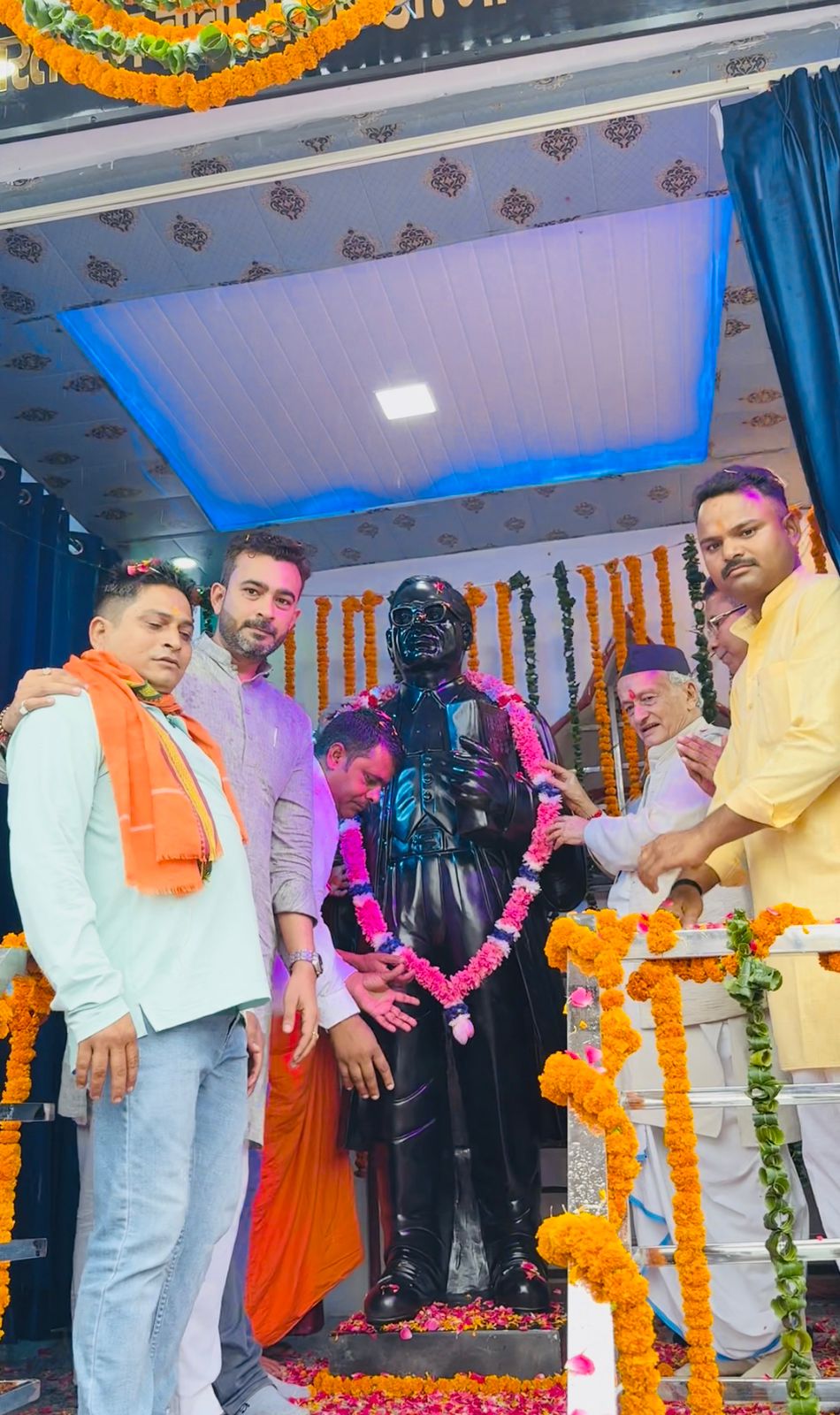 रविदास मंदिर में संविधान निर्माता बाबा साहेब की प्रतिमा का पूर्व सिंह ने किया अनावरण